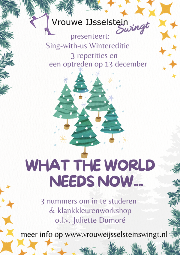 Vrouwe IJsselstein Swingt (VIJS) nodigt je van harte uit om mee te doen aan het zangproject ‘What the world needs now!’